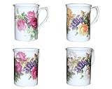 Gracie Bone China Classic English Garden Rose 10-Ounce Mug with Gold Trim, Assorted Set of 4 Details & Features